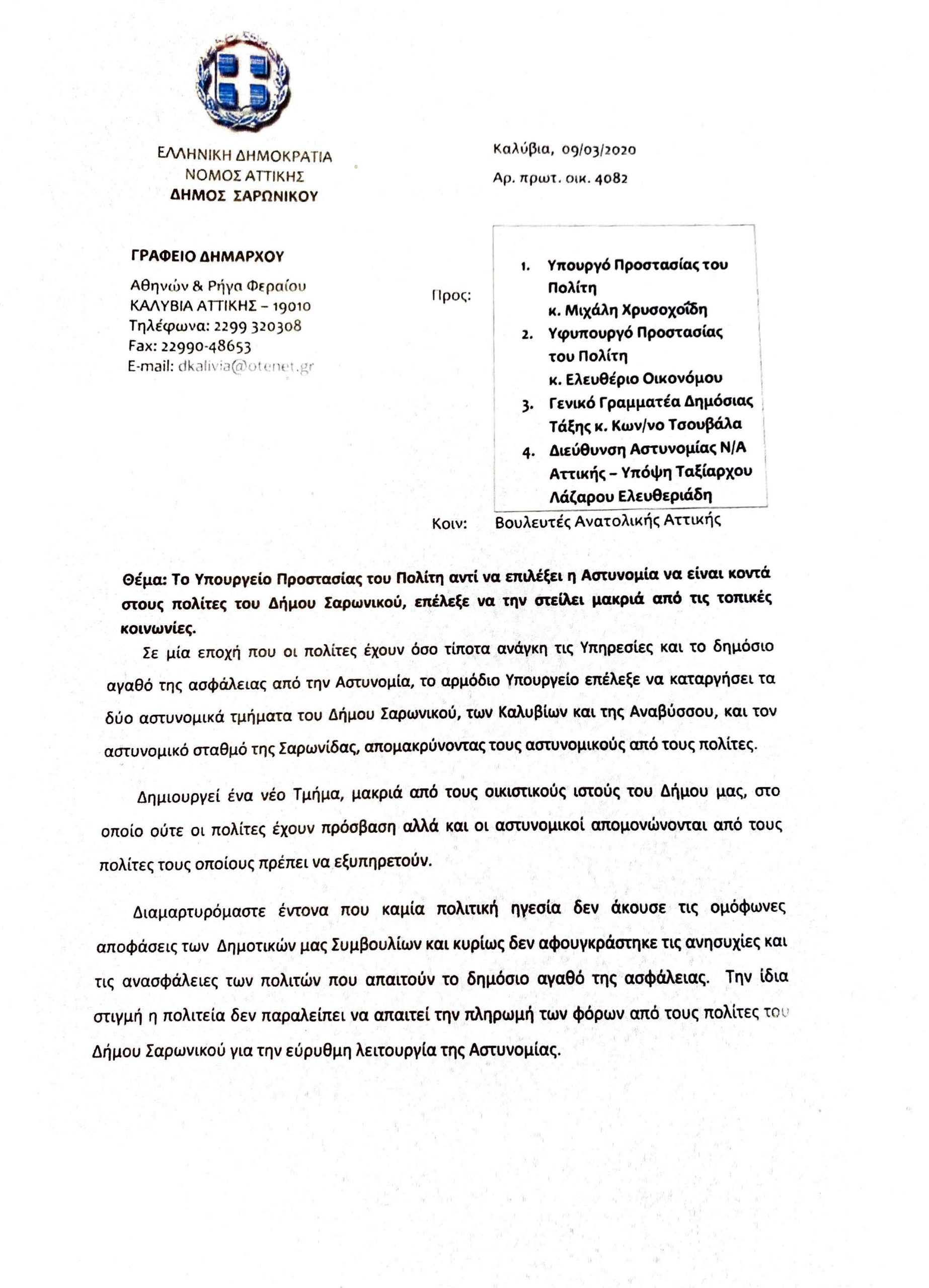 για την αστυνόμευση του Δήμου των Καλυβίων…