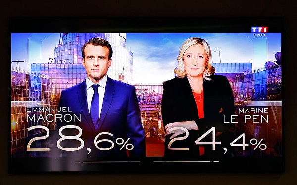 Κατά τις εκτιμήσεις του γαλλικού τηλεοπτικού σταθμού TF1 ο Εμανουέλ Μακρόν συγκεντρώνει το 28,6% των ψήφων έναντι 24,4 % της Μαρίν Λεπέν.