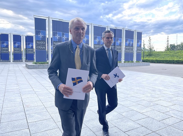 O πρεσβευτής της Σουηδίας στο ΝΑΤΟ, Άξελ Βέρνχοφ, και ο Φινλανδός ομόλογός του, Κλάους Κορχόνεν, υπέβαλαν επίσημα από κοινού την αίτηση προσχώρησης στο Βορειοατλαντικό Σύμφωνο στο αρχηγείο της Συμμαχίας στις Βρυξέλλες. Τις αιτήσεις παρέλαβε ο ΓΓ του ΝΑΤΟ, Γενς Στόλτενμπεργκ, κάνοντας λόγο για «ιστορικό βήμα».