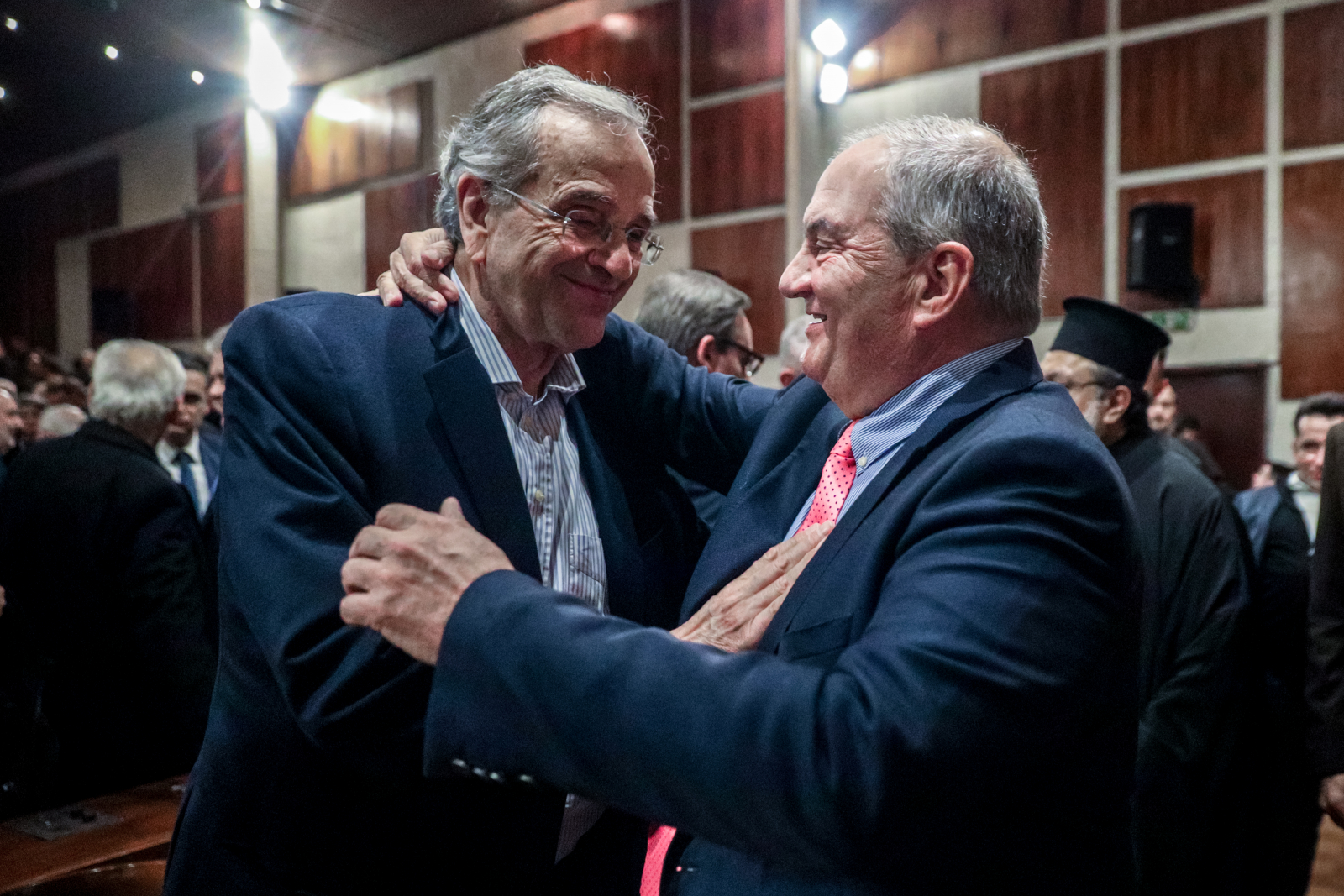 Στην εκδήλωση, Καραμανλής και Σαμαράς συζητούσαν για αρκετή ώρα χαμηλοφώνως.